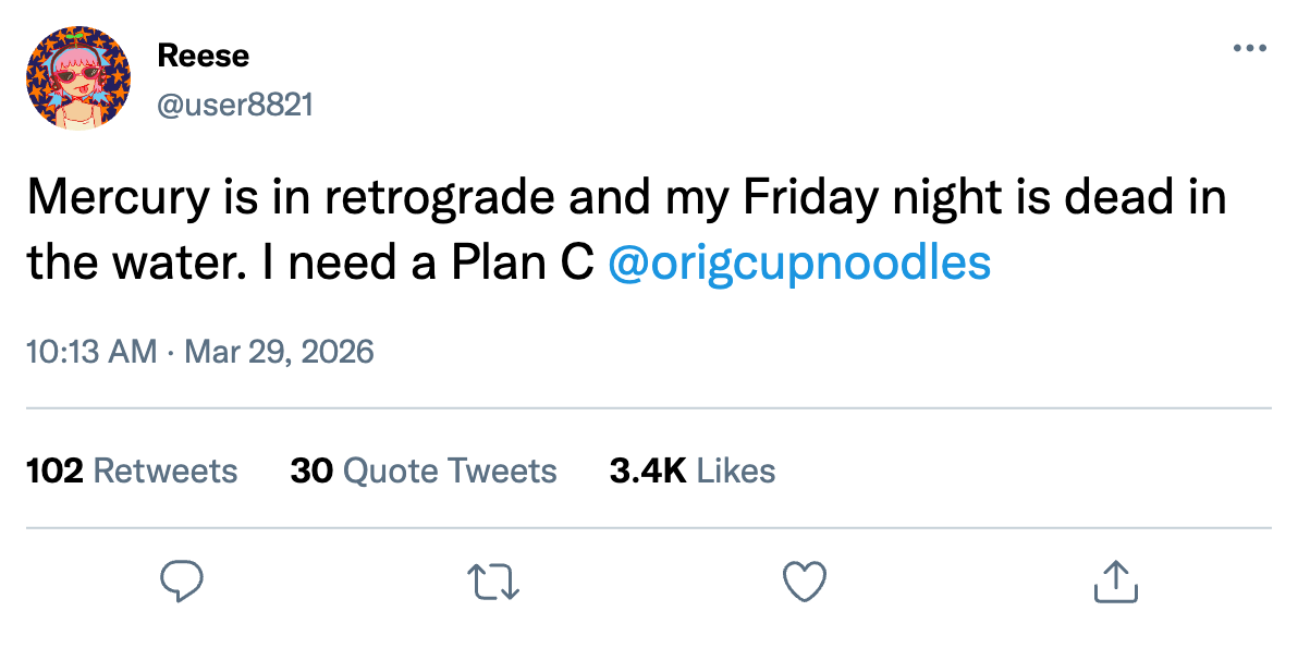 Cup Noodles is no one’s first or second choice food. But when it comes to your survival, anything’s better than nothing. When Plan A and Plan B crash and burn, Cup Noodles is your Plan C.